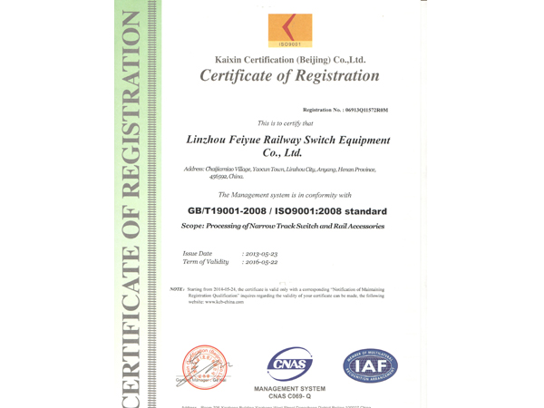 林州市飛躍鐵路道岔器材有限公司位于舉世聞名的世界八大奇跡之一“人工天河”紅旗渠畔,晉、冀、豫三省交界處,交通、通訊便捷。 公司擁有職工和管理人員120多人,高工5名,技術(shù)人員23人。擁有先進(jìn)的鑄造機(jī)加工設(shè)備和完整的質(zhì)量檢測體系,使我公司連續(xù)數(shù)年被評為“重合同守信用”和“重量管理”先進(jìn)單位。公司生產(chǎn)的主要產(chǎn)品有:輕重軌道岔及各種工具。按種類區(qū)分有:單開道岔、對稱道岔、三開道岔、渡交組合道岔等。特殊要